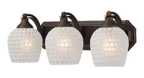 Affiliate reviews Elk 570-3B-WHT 3-Light Vanity in Aged Bronze and White Mosaic Glass